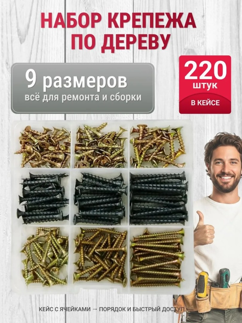 Набор крепежа " Домашний №3 " саморезы+дюбеля - 275 шт